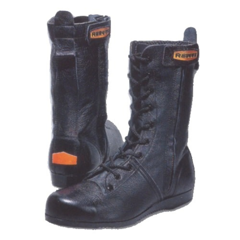素材;甲革:牛クロムなめし革(ソフト)、先芯:合成樹脂、ゴム底:合成ゴム(高所用底)、踏み抜き防止:ステンレスバネ鋼